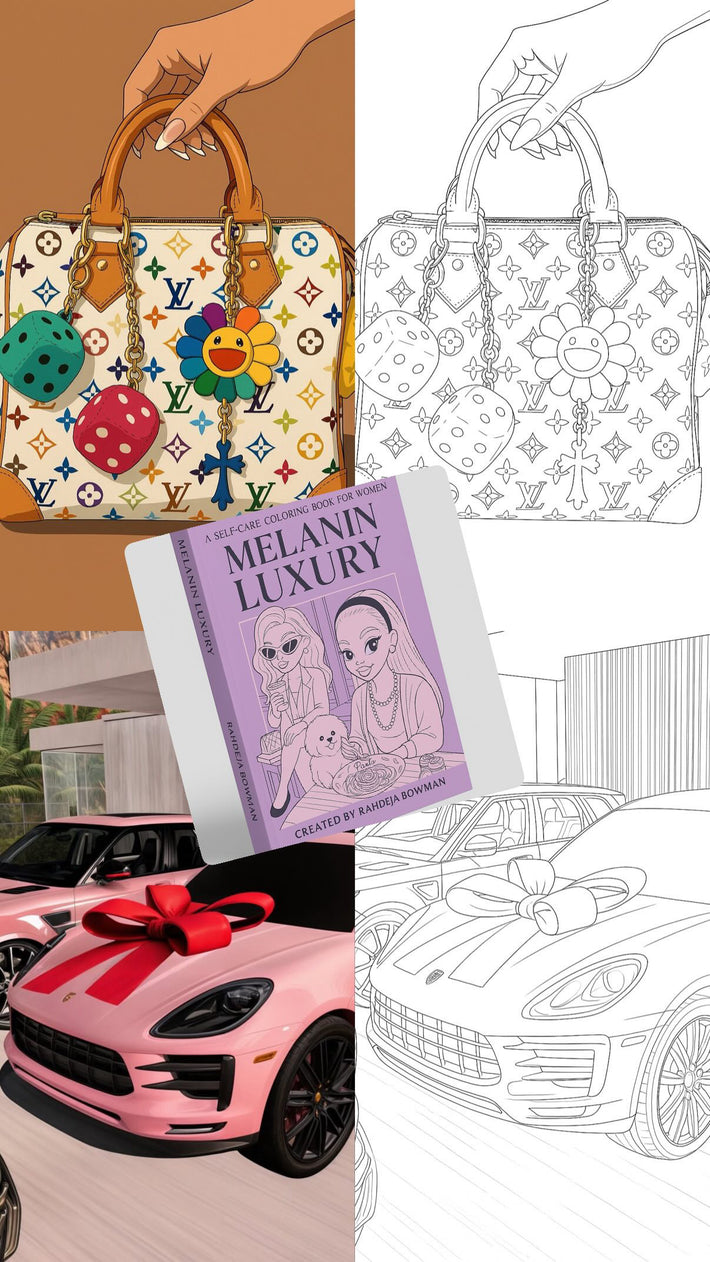 Indulge in calm and creativity with Melanin Luxury - a self-care coloring book created especially for Black women who love beauty, travel, and luxury. Each page celebrates melanin luxury, feminine strength, and soft-life energy through elegant, empowering illustrations.